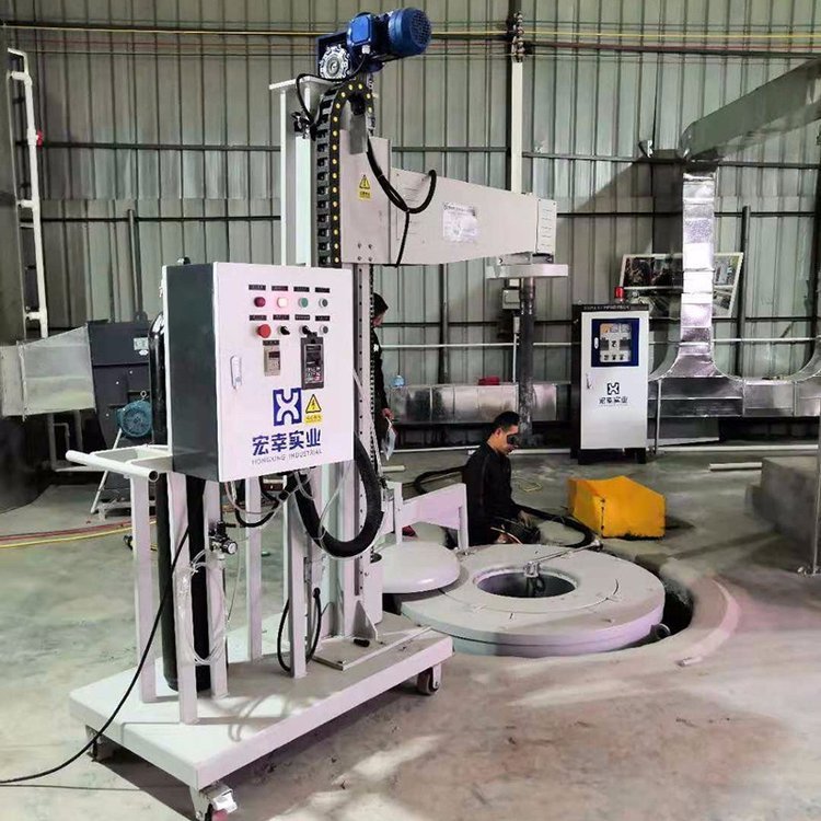 本设备的原理是工作中旋转的石墨转子将吹入铝液中的惰性气体(氩气或氮气)破碎成大量的弥散气泡,并使其分散在铝液中;气泡在铝液中靠气体分压差和表面吸附原理,吸收铝液中的氢,吸附氧化夹渣,并随气泡上升而被带出铝液表面,使铝液得以净化;由于气泡细小弥散,与旋转熔液均匀混合中,并随之转动呈螺旋形缓慢上浮,与铝液接触时不会形成连续直线上升产生的气流,从而显着提高了净化效果。氩气和氮气都可以作为对铝液进行除气除渣的气体。惰性气体纯度须在99.99以上。适用于对坩埚式熔炉、池式熔炉、发射熔炉、浇包/中转包及静止箱内的铝液进行除氢/除渣净化处理。
