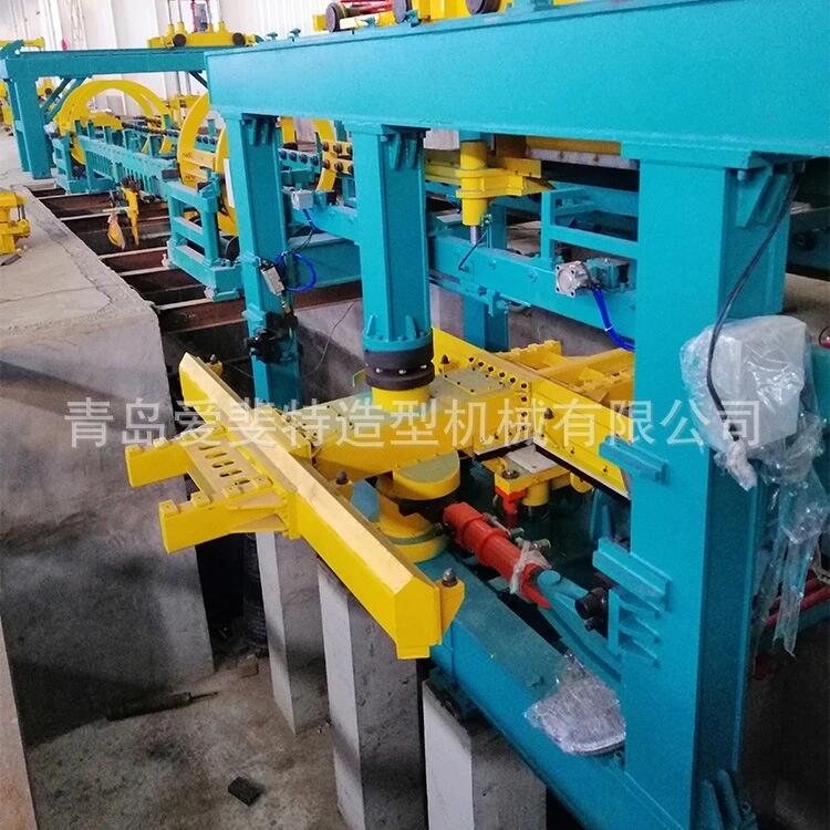 静压造型线为开放式布置,由静压造型机和合箱机、铣浇冒口机、分箱机、捅箱机、浇注机、转运小车、清扫机及型砂输送机等;除此,还有为完成砂箱而设置的辅机。这些辅机的结构和工作原理大多比较简单,一般由机械机构(常以机械手的形式出现)、驱动装置(气动、液压或机械传动)以及定位和缓冲装置等组成。