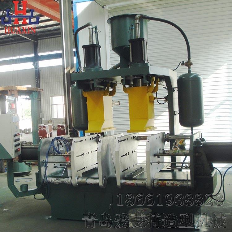 热芯盒射芯机是采用覆膜砂射制砂芯设备。可射制各种模板尺寸范围内和射砂重量范围内的实心砂芯。本机涉及两个射头采用射砂筒往返直线移动完成加砂和射砂动作。根据用户模具不同两个射头既可以同时动作又可以单个运行动作,可以同时安放两付不同模具,又可以一边安放一付不同模具进行生产,操作方便快捷,生产率高。采用热芯盒腹膜砂保证砂芯质量。本机开合模方式为垂直分型,可设中间定模,左右开合模。动模左右各有一套开合模气缸,可分别安装两付模具,由动模左右合模来完成。开模到位撞上死顶杆,即顶出砂芯。本设备的所有动作由手动换向阀控制。