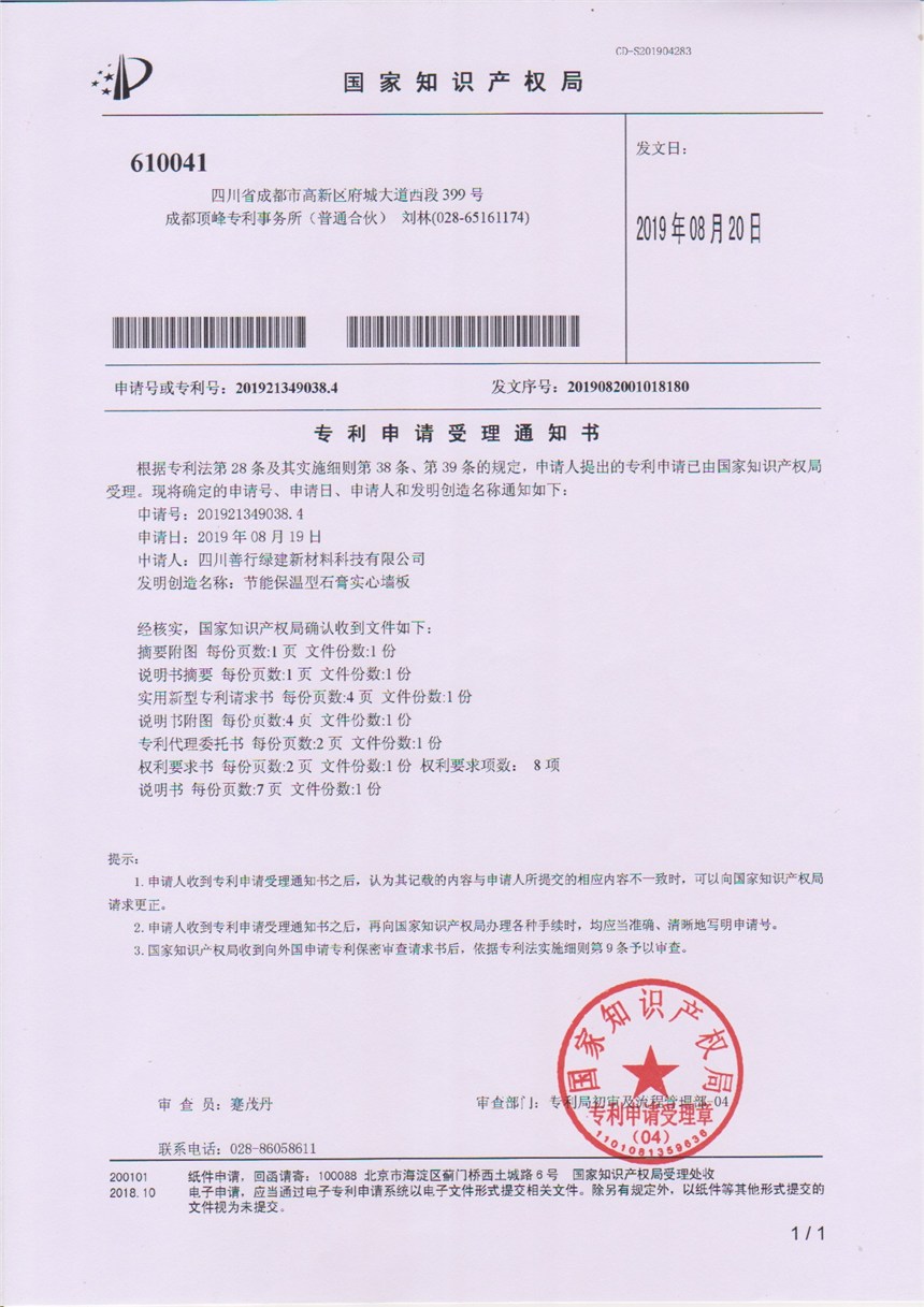 在这样的基础之上,四川善行绿建并未满足,在研发上持续投入,通过专利技术(专利号:201921349038.4)创造出“节能保温型石膏实心墙板”这一新型产品,让装配式建筑的绿色环保持续深入,让采用这种节能保温型石膏实心墙版的房子天生就能呼吸,会调温,势必成为装配式建筑领域独树一帜的全新产品。