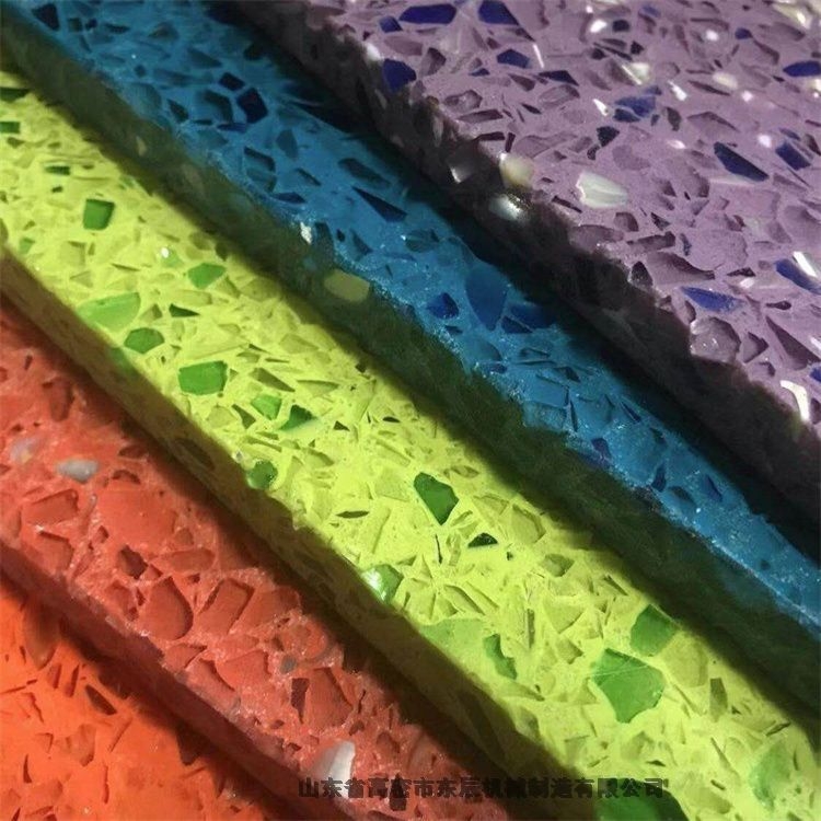 水泥基大板人造石新型建材设备、无机水磨石板材设备,通体砖设备,分体砖设备,PC砖设备,湿法制路沿石设备等,其中以全自动多工位多色彩砖机、直线型压砖机,码垛机、直线磨台、圆盘磨石机等系列产品为主。经过大量改进和技术攻关,成功研制出具备东辰“核心技术”的新型机械,经过用户多年使用并改进,该系列机械以其独特外型设计、人机界面操作、PLC控制、先进合理的结构布局是目前同行业高品质、高性价比的推荐产品。 本公司生产的水泥基人造石设备和无机水磨石板材设备可以加装高频振动装置和抽真空排水装置,提高板材的出石率,减少板材的气孔,增强板材的强度。主要机制水磨石板材的尺寸有:1600X1000, 1600x800mm, 1500x670mm,1200x1200mm, 1200X900mm, 1200x600,1000x1000mm, 1000X800mm, 800X800mm, 600x600mm,500*-500,300*300mm等大中小型设备