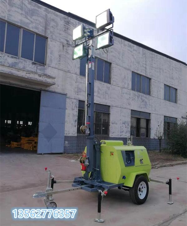 电力等紧急抢险现场,露天采矿现场,以及-洪-汛、抢险救灾现场等其他需要紧急备用光源、电源的场合。HH-400四灯移动照明车灯盘由四个400W-效-灯头组成,可根据现场需要将灯头在灯盘上均布向四个不同方向照明,也可将每个灯头单独做上下、左右大角度调节旋转实现360°-照明;如需四个灯头向同一方向照明,则可按所需照明角度和方位将灯盘整体向开口方向在250°内翻转及以气缸为轴心向左右进行360°旋转;聚光灯头水平方向可远距离照明,整体照明远近兼顾,照明亮度-,灯泡寿命长。灯盘采用伸缩气缸作为升降调节方式,-大升起-为4.8米;上下转动灯头可调节光束照射角度,灯光覆盖半径达50-60米。工作时间 灯具可在30米距离内使用220V市电长时间连续工作,也可选购发电机组供电;采用发电机组供电一次注满燃油连续工作时间可达13小时灯具下部气缸采用可调式三脚支架支撑,在不-过 15°的斜坡、碎石路面及面积狭窄的地方能-固定;灯具灯盘、气缸和发电机组为整体结构,发电机组底部装有万向轮和铁轨轮,可在坑洼不平的路面及铁轨上运行。整体采用各种优质金属材料制作,结构紧凑,性能稳定,-在各种恶劣环境和气候条件下正常工作,-雨淋、喷水,-风等-为8-。