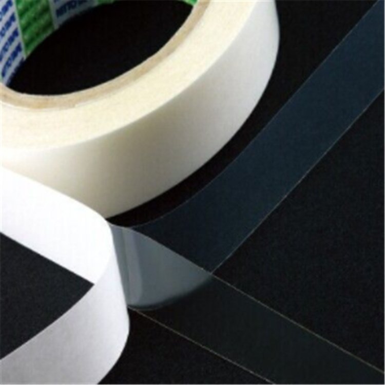 该双面粘合胶带在柔软的无纺布上浸渗压敏性粘合剂而制成,