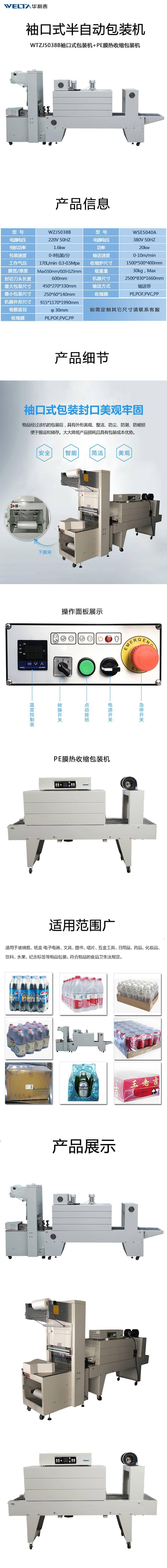 WTZJ5038B袖口式打包机 玻璃水饮料塑包机套膜热缩机pe膜热收缩包装机