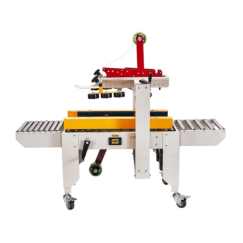 封箱机主要适用于纸箱的封箱包装,封箱机采用胶带对纸箱封口,经济快速、容易调整,可完成自动封箱动作,如采用印字胶带,更可提高产品形象。封箱方式可分为:上下驱动、左右驱动、侧边、角边等,一般采用透明胶带以及牛皮纸材料。