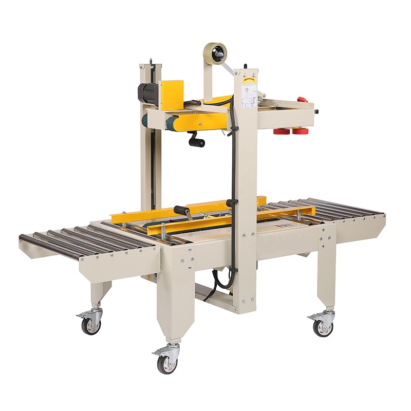 封箱机主要适用于纸箱的封箱包装,封箱机采用胶带对纸箱封口,经济快速、容易调整,可完成自动封箱动作,如采用印字胶带,更可提高产品形象。封箱方式可分为:上下驱动、左右驱动、侧边、角边等,一般采用透明胶带以及牛皮纸材料。