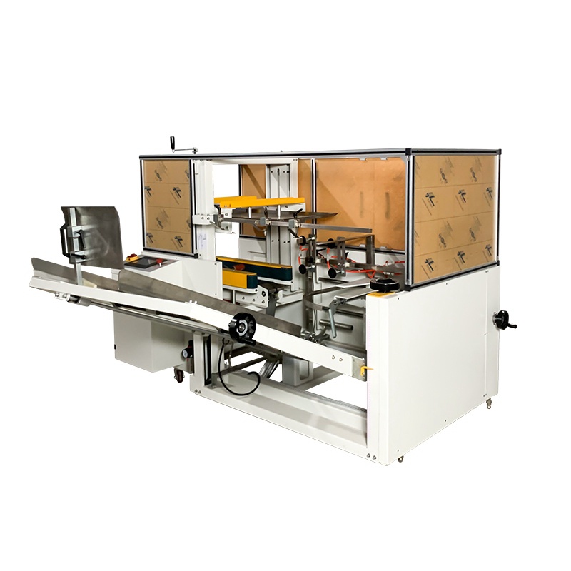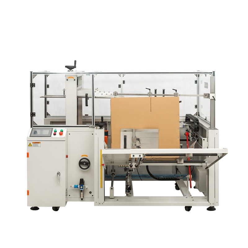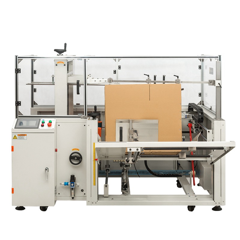 开箱机集自动开箱、自动折合下盖、自动密封纸箱底部,机器采用PLC+人机界面控制,折底不停留,输送中完成折底、封底,同时完成吸箱、成型、折底、封底整个过程,操作方便、维修简单、性能稳定,是自动化规模生产所需的流水线设备。