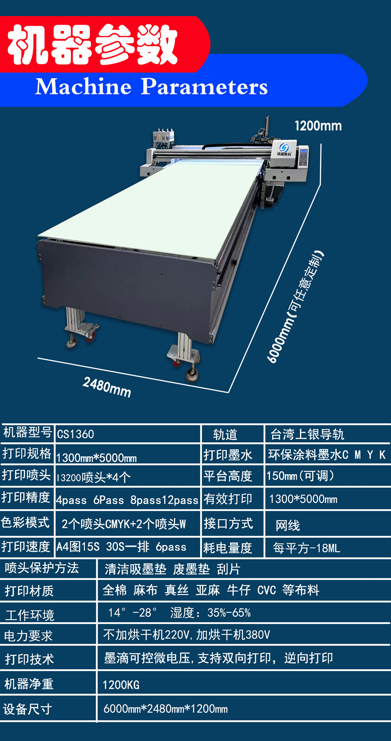 数码印花跑台机T恤卫衣裁片成衣白彩同出四喷头高速3200喷头打印机跑台机