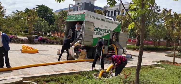 早期的城市排污管网系统及城市护城河道淤泥的清理,一般采用人员清掏的方式,这种作业方式劳动强度大、工作环境差,事故频发对作业人员造成终身的职业伤害,工作效率也极为低下。同时,清掏的污泥或粪便堆积在路面,散发着恶臭,造成城市环境的二次污染。这种落后的工作方式逐渐被吸污净化车所代替,该设备实现了部分机械化清掏方式(部分情况需人员下井和罐式吸粪车协作作业),解放了劳动力。但这种方式存在非常严重的隐患。车辆吸上来的污物中的粪水占比达到99以上,真正造成污水管网堵塞的垃圾占比不到1,彻底清掏一个化粪池(50m3左右)需要10个车次以上。为了节约时间和油料成本,行业内惯例是就近运输排入市政管网,在转运垃圾的过程中过很容易造成抛洒、泄漏,对城市环境产生一定影响,不能从本质上实现污水的一次净化处理,实现垃圾资源化回收利用,这与当前我国城市垃圾治理理念的发展相悖