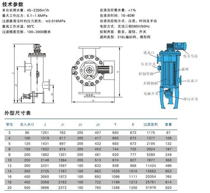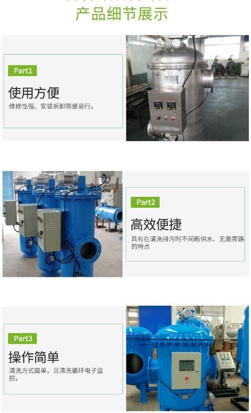 该过滤机全自动运行,清洗彻底无死角,无需更换滤元,智能控制系统能够保证设备运行安全、稳定、可靠;设备占地面积小,维护方便,运行费用低,并可根据现场情况选用立式或卧式安装。ydwf1