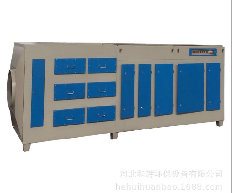 泊头市实恒除尘设备有限公司为湖南化工厂刘先生制作生产的活性炭光氧一体机,为化工车间除臭除味设备产品,活性炭光氧一体机工作原理用一句话说明就是利用高能臭氧UV紫外线光束进行分解空气中的氧分子产生游离氧,即为活性氧,因游离氧所携正负电子不平衡所以需氧分子结合,进而产生臭氧。臭氧对有机物具有极强的氧化作用,对恶臭气体及其它刺激性异味有立竿见影的去除效果。工业废气将利用排风设备输入到本净化设备后,该净化设备运用高能UV紫外线光束以及臭氧对工业废气进行协同分解氧化反应,使得工业废气物质其降解转化成低分子化合物、水和二氧化碳,再通过排风管道排出室外。总之其原理是利用高能-C光束工业废气中细菌的分子键,再通过臭氧进行氧化反应,以达到净化废气的目的。