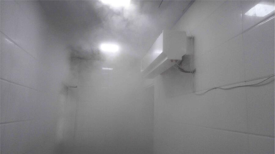 设备采用超声波造雾原理,利用主机内雾化片的高频振动来产生超声波,以此来将内部消毒水碎成细小的雾粒,并由内部风扇吹出,5-10微米的雾粒快速的充斥整个消毒室内,对其内部人员进行全方位消毒。