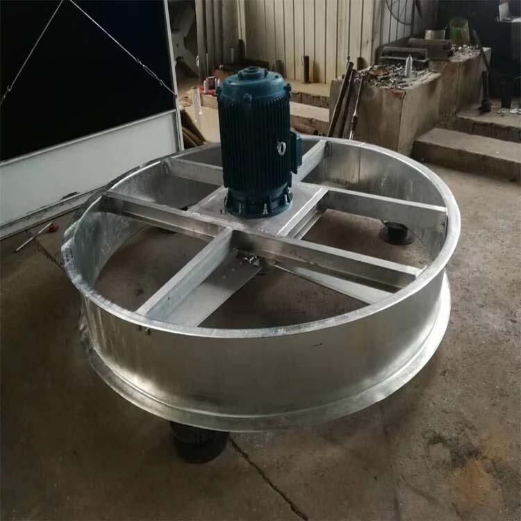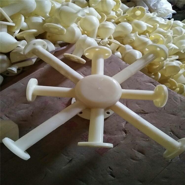 4、布水器:冷却塔配有旋转布水器,利用水的反冲力自动旋转布水,200型以下采用磷青铜内芯和尼龙布水器外壳组成。200型以上的布水器,采用铝合金,内装轴承,故旋转灵活、耐磨、耐腐、使用可靠、供水压力很低,有利于节能。布水孔位置根据多次实践而定,以调整角度,改变布水器转速。特殊要求,彩喷咀布水。冷却塔风机是冷却塔的关键部件。由风机叶片、轮毂、减速机、传动组件和电机组成。现已开发、生产直径2.4米—9.2米的十几个规格,远销海内外。