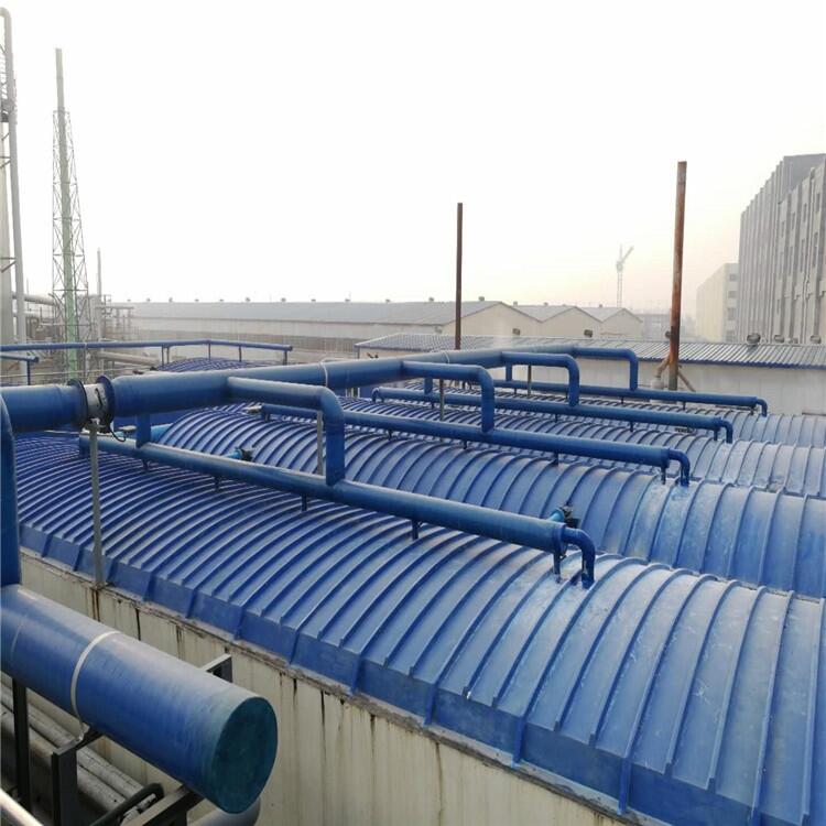 第二种是采用玻璃钢板来盖住整个污水池。玻璃钢是一种稳定的非金属材料,它可以抵挡住强酸碱和水锈的侵蚀,并且基本不需维护,且这种方案不需要有支撑结构。但其缺点是只能针对一些小跨度的污水池或者在污水池上方铺设一些走道,一层一层利用玻璃钢板覆盖。