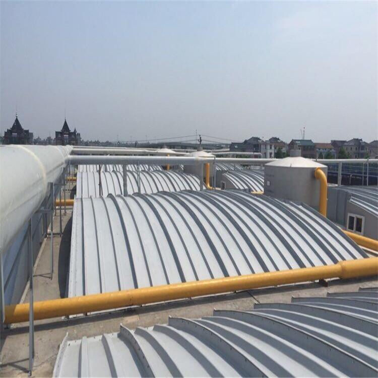 第一种是内部的碳钢骨架和外部表层增加阳光板。这种目前价格较便宜,一些小型的污水池还在使用,一般用在普通的生活污水池中。但该种方式无法抵挡腐蚀性气体的侵袭,一旦污水中有腐蚀性或污水量较多,碳钢骨架和阳光板容易受到腐蚀或水锈的侵蚀,这样会降低其使用寿命,需要二次建设。