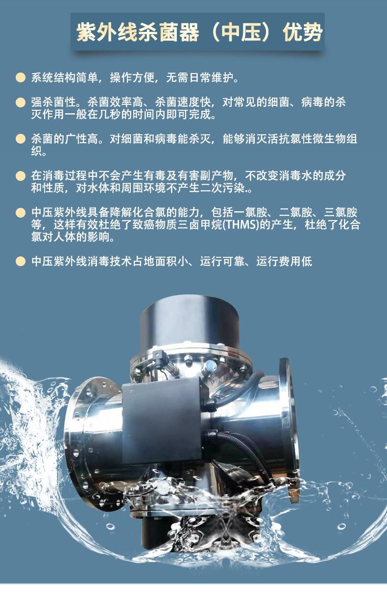 中压紫外线消毒设备占地面积小、运行安全、可靠、维修简单、费用低。??