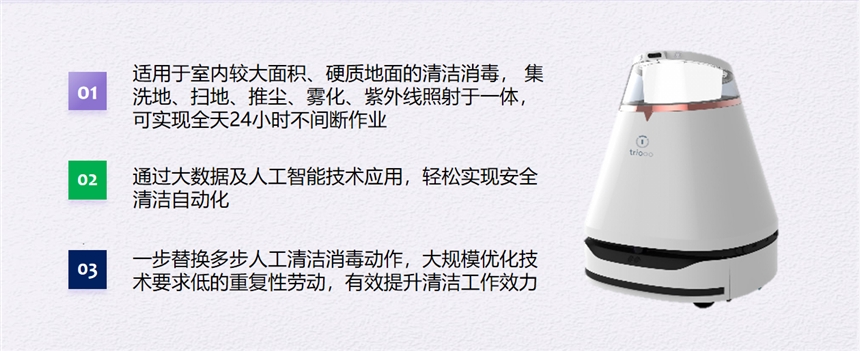 商场智能洗地机器人 瑞时T1智能洗地机消杀机器人 酒店会展中心清洁机器人适用于室内较大面积、硬质地面的清洁消毒, 集洗地、扫地、推尘、雾化、紫外线照射于一体, 可实现全天24小时不间断作业