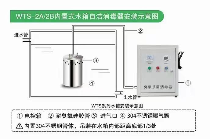 水箱自洁消毒器在用于饮用水消毒时具有高的杀菌效率,但在应用于污水消毒时往往需要较大的臭氧投加量和较长的接触时间。其主要原因是污水中存在较高的污染物如COD、NO2-N、色度和悬浮物等,这些物质都会消耗臭氧,降低臭氧的杀菌能力,只有当污水在臭氧消毒之前经过必要的预处理,才能使臭氧消毒更经济更有效。臭氧与污水的接触方式传质效果也会影响臭氧的投加量和消毒效果。