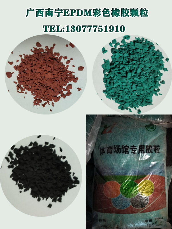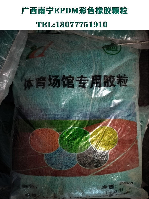 颜色:铁红(适用于球场、跑道等),红色,黑色,蓝色,深绿,大黄,橘黄色,紫色等。含胶量:10%,13%,15%,18%等。广泛应用于各种运动场地,如塑胶跑道、球场、公共休闲区、幼儿园、人行道、橡胶地垫、橡胶卷材等。其中,因其颜色多样特点,在公共休闲区和幼儿园使用更多。EPDM彩色橡胶颗粒【广西南宁EPDM彩色橡胶颗粒厂TEL:13077751910】红色 黑 蓝等,规格齐全,颜色多样,欢迎订购!用途广泛,适用范围广,深受广大客户的信赖!广西南宁EPDM彩色橡胶颗粒,EPDM颗粒广泛应用于各种运动场地,如塑胶跑道、球场、公共休闲区、幼儿园、人行道、橡胶地垫、橡胶卷材等。其中,因其颜色多样特点,在公共休闲区和幼儿园使用更多。