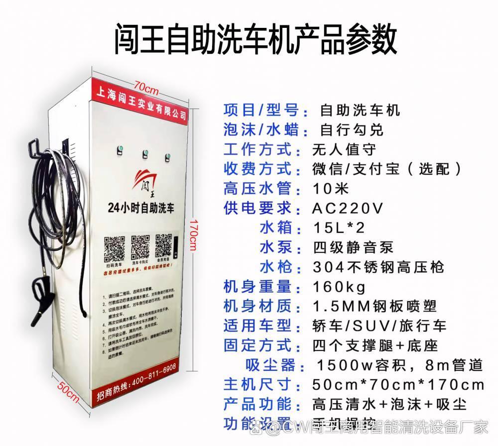 闯王自助洗车机是上海闯王实业有限公司推出的24小时无人自助洗车设备,适用于小区、停车场、加油站等场所,具有以下特点和优势: