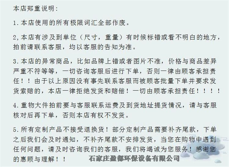 石家庄盈都环保设备有限公司 智能客服智能客服在线解答,若涉及资金打款事宜,务必与厂家进行电话确认。