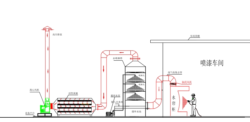 5、定期更换活性炭,饱和的活性炭吸附效率降低,应定期从下料口卸出,重新装上新的活性炭。更换周期要根据实际情况确定,喷漆废气一般为三个月.