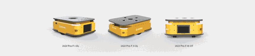 智能移动机器人iAGV Pro-F包含三款不同机型。外形设计更紧凑,更适合窄道运行,离地间隙更低,重/心更稳。采用激光或激光 二维码定位导航,可实现机器人在厂内不同区域自主行驶,完成运输任务。