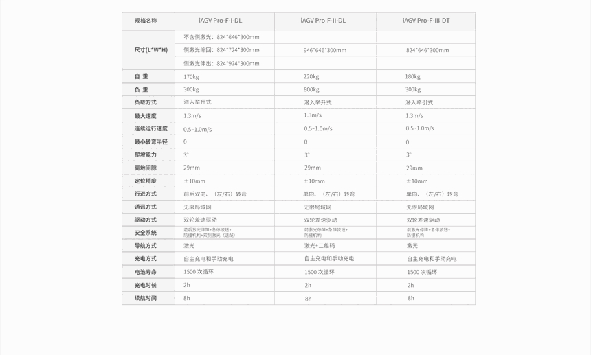 iAGV Pro-F-Ⅱ-DL:采用激光+二维码双重定位导航,可满足厂内不同区域的物流搬运需求,负载升级至800kg,物流效率得到明显提升。
