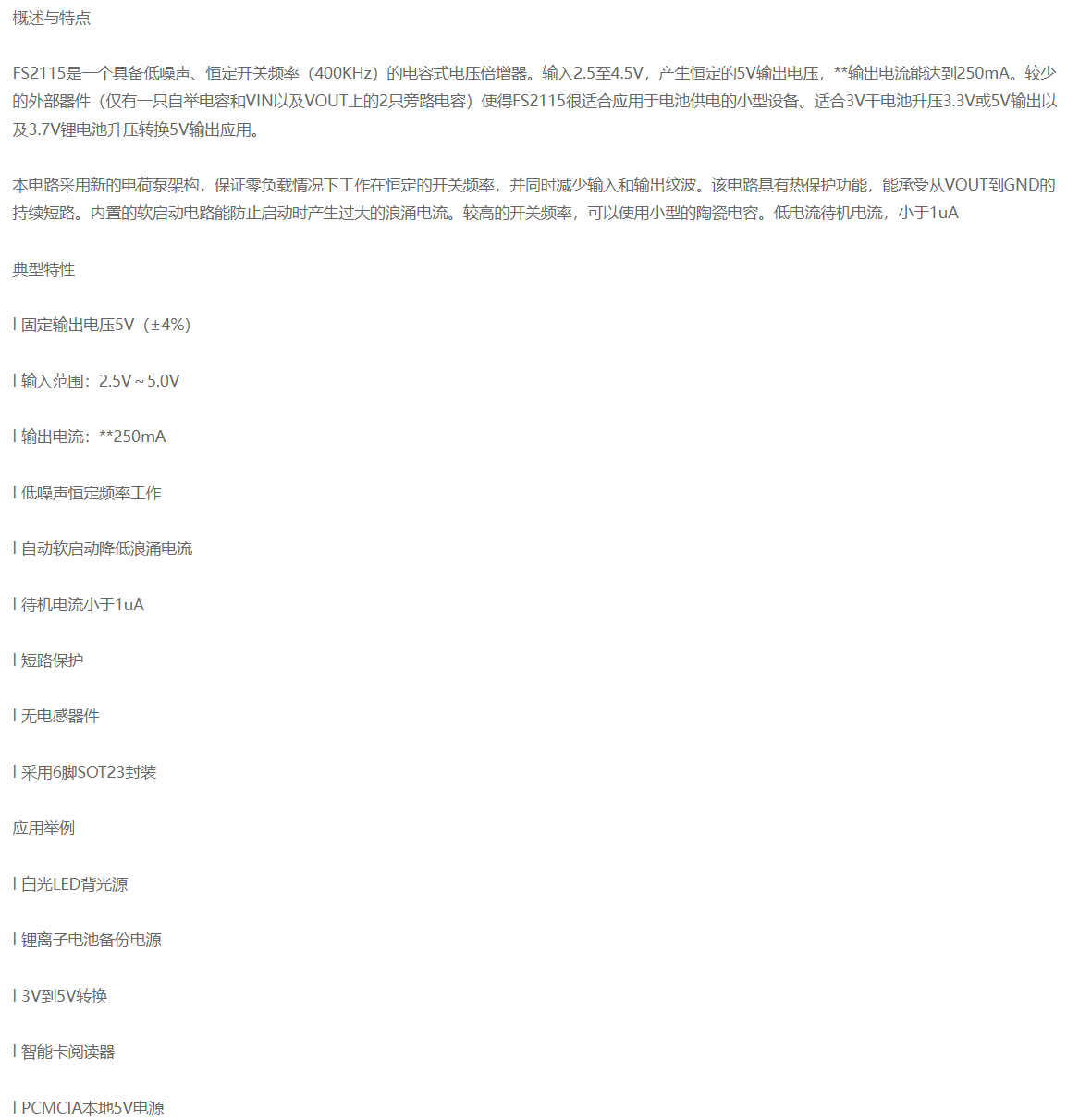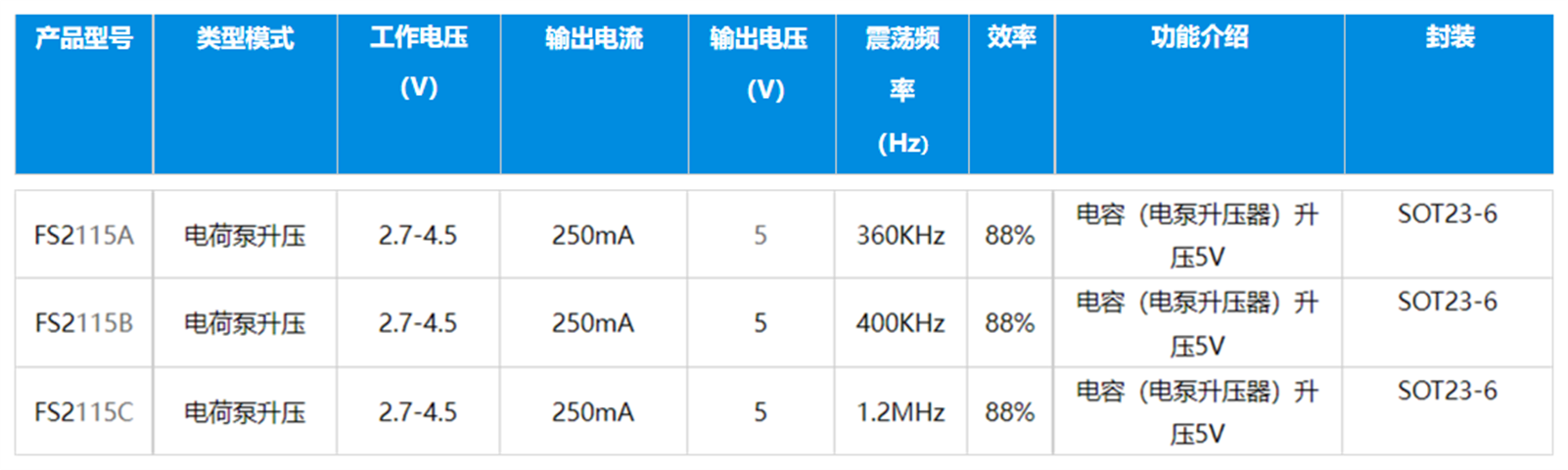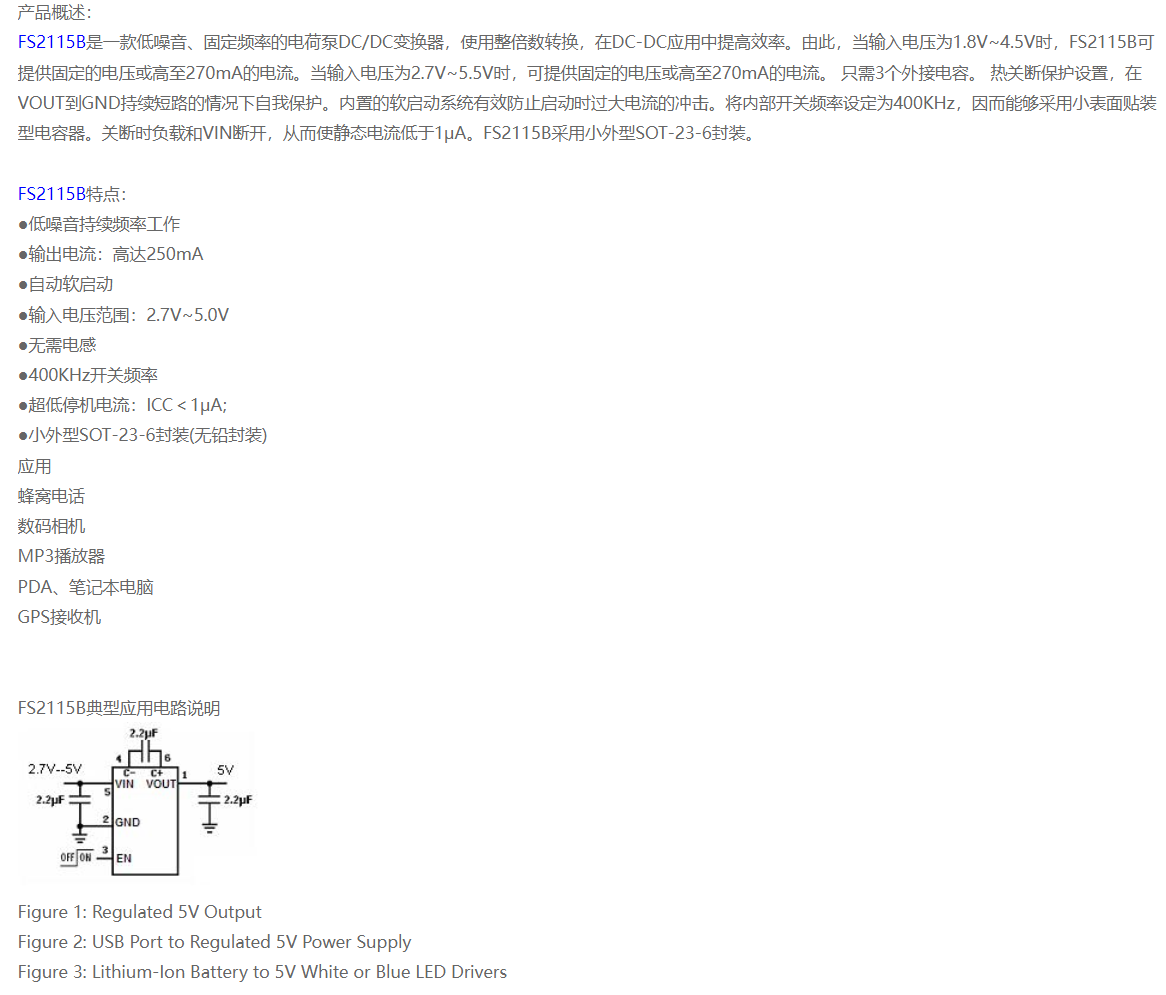 FS2115系列 SOT23-6 3.3V/5V 低噪声、稳压电荷泵 DC/DC 转换器 型号 | FS2115 | ||