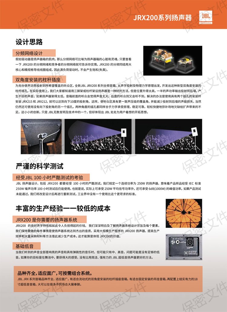 ● 使用的低音单元和压缩驱动器金部由美国加洲JBL公司制造。