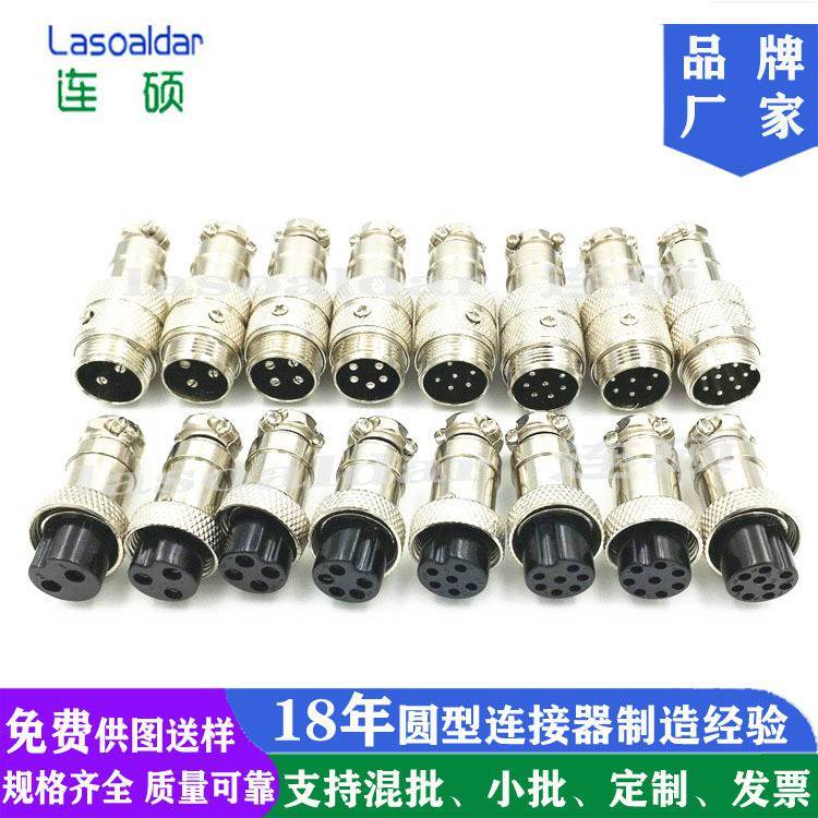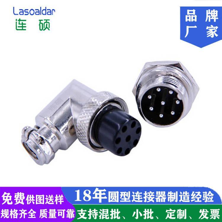 连硕达厂家八8P芯M16圆形连接器90°度弯角GX16航空插头弯头公母