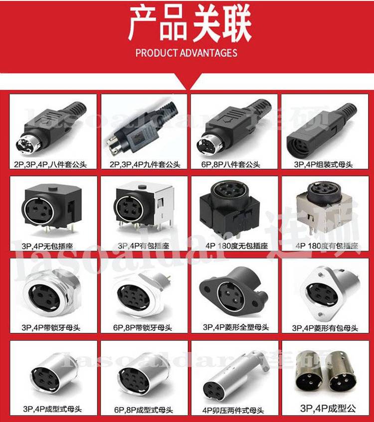 P0S机用power din4P组装式母头 装配式四芯孔中DIN电源插头连接器
