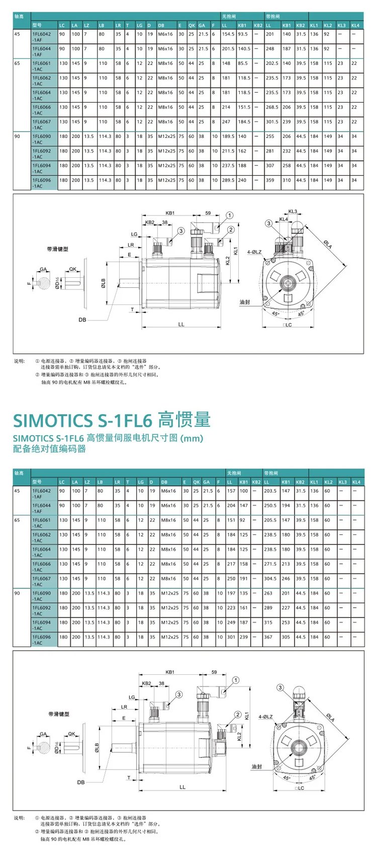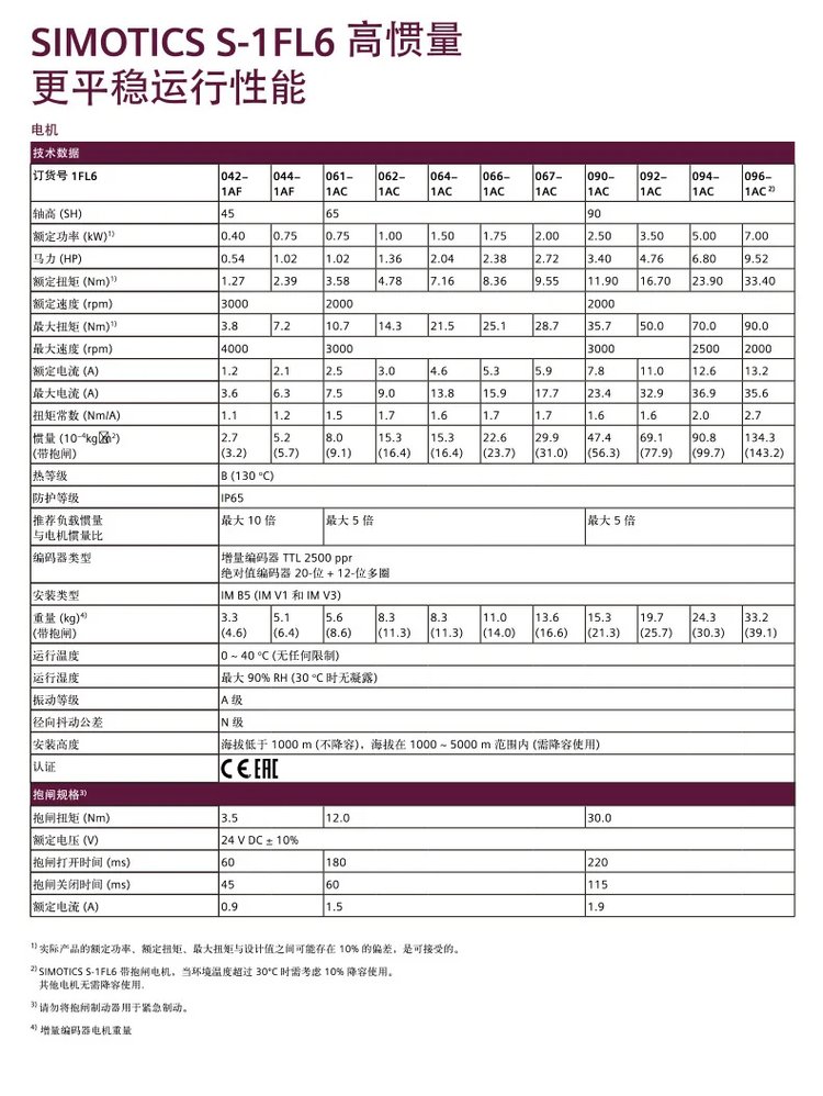 电动机名称 | SIMOTICS S-1FL6 低惯量型电机 | ||