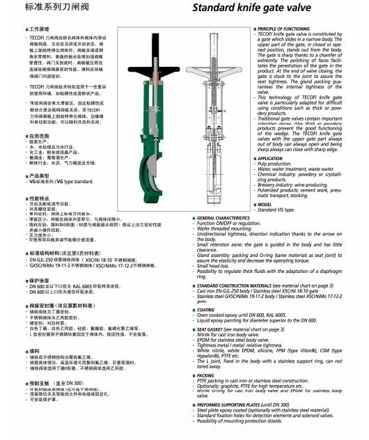 基本结构与标准刀闸阀VG相似,并且特别增加放料功能设计。放料刀闸阀结构长度比VG标准刀闸阀更长,它的优势有以下几点: