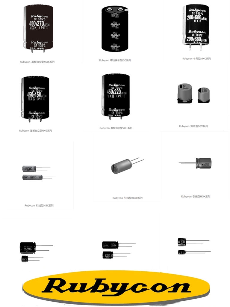 日本红宝石电容器( Rubycon):日本高品质专业铝质电解电容器制造厂之一,拥有50年专业制造经验。RUBYCON铝质电解电容品种繁多,用途广泛。