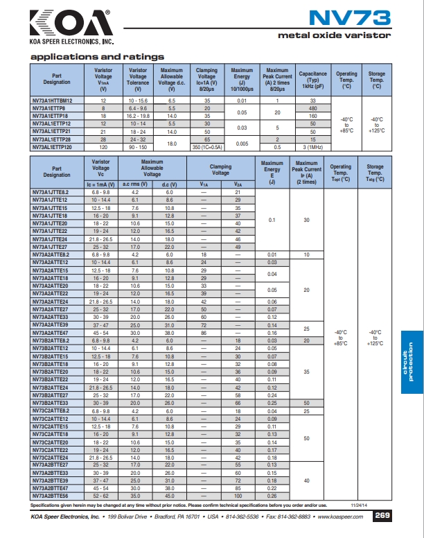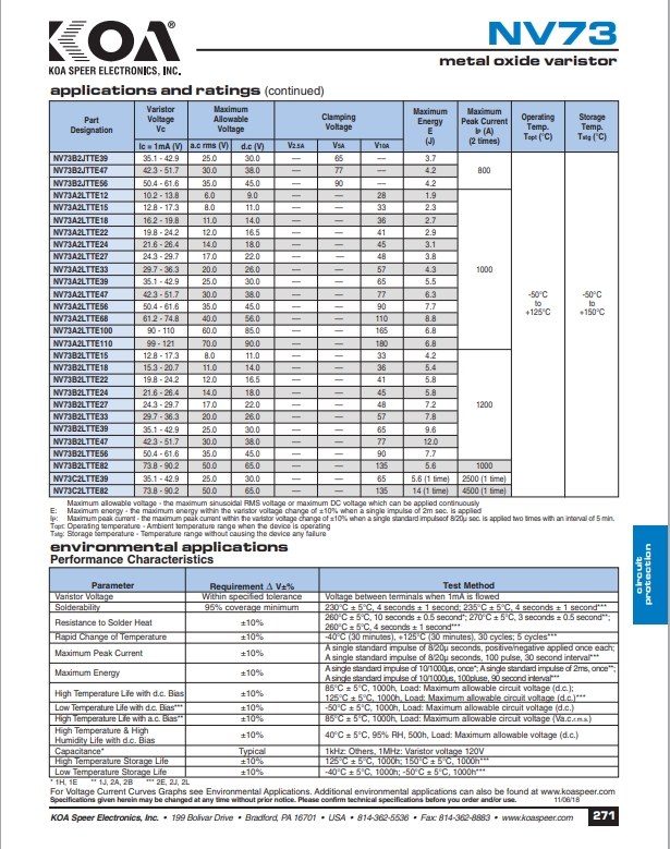 NV73 层叠型金属氧化物压敏电阻器