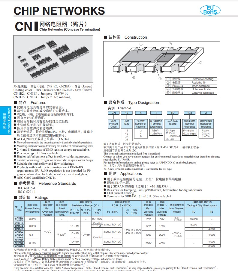 KOA CN系列排阻 网络与阵列电阻器 KOA电阻代理商罗吉达