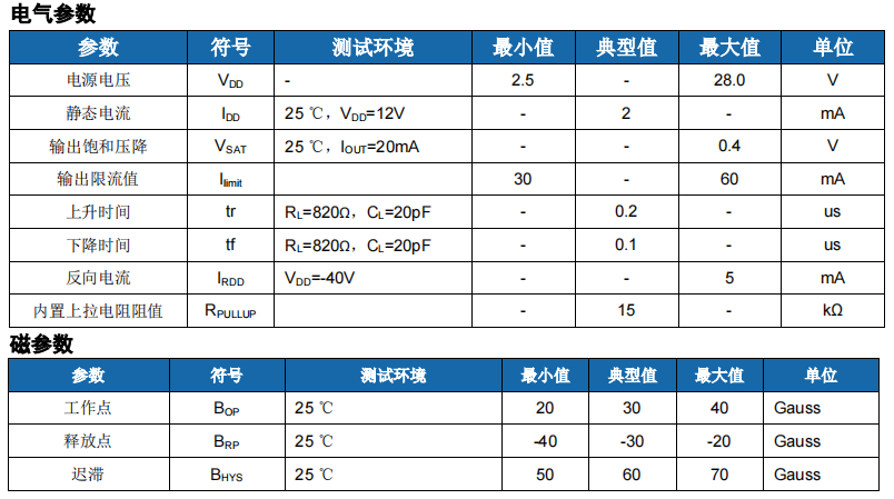 HS261提供TO-92S和TSOT23-3两种封装,均为符合RoHS规范,产品的使用环境温度范围为-40~125℃。
