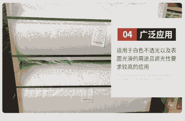 产品应用:适用于白色不透光以及表面光滑的用途且遮光性要求较高的应用