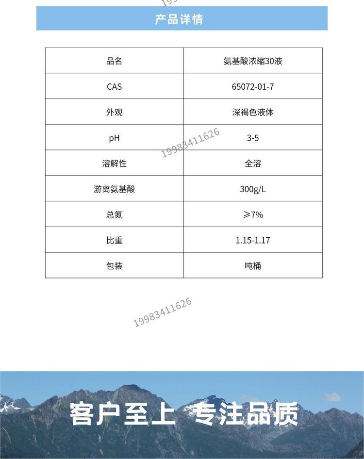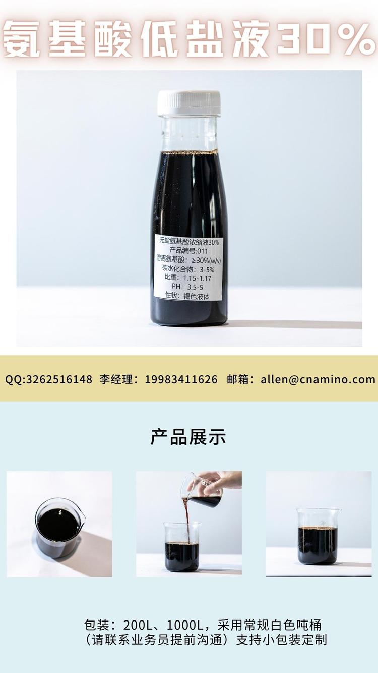 厂家供应 氨基酸浓缩30液 低氯低盐 游离AA300g/L 总氮7 叶面肥 品牌 | 世宏 | ||