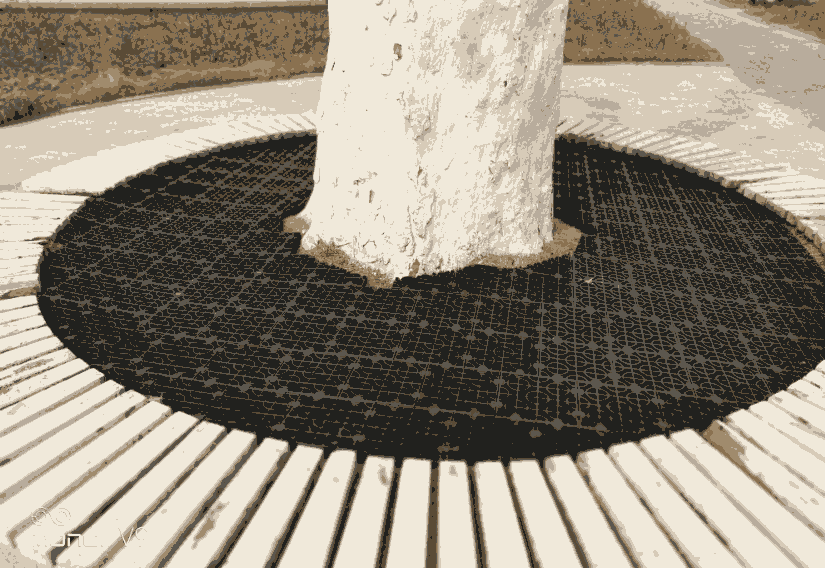 装饰性好: 将圆、半圆及十字采用独特连接任意组合,颜色可调,形成的图案方圆有度,规整协调,使树池形成一种装饰和点缀。