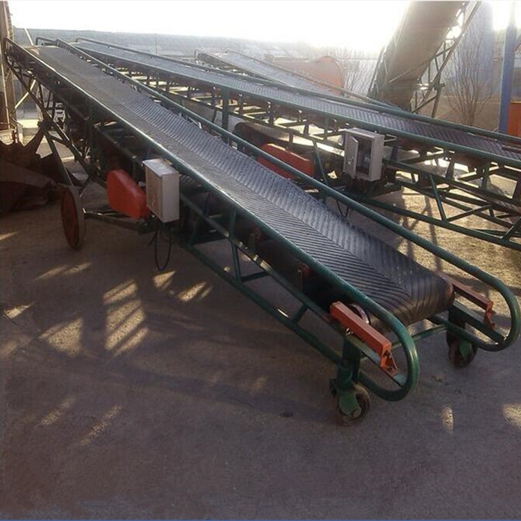 DY型可移动式皮带输送机是一种工效高,使用,机动性好的连续输送装卸设备。主要用于装卸地点经常变更动的场所,如:港口、码头、车站、煤场、仓库、建筑工地、沙石料场、农场等,用来短途运输及装卸散料或单件重量100公斤以下的成件物品。DY型移动式胶带输送机分为可升降型及不可升降型两大类,输送带的运行靠电动滚筒驱动,整机的升降与运行均为非机动。
