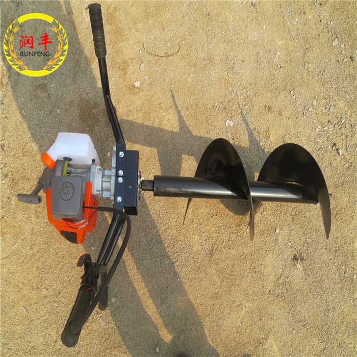 植树挖坑机是适用于园艺、城市绿化、坡地植树挖坑、沙土质地及果园种植果苗作业,荒山荒地、次生林地、采伐迹地以及黄土高原的沟坡进行造林前的整地或挖坑。同时可用于果园、桑园、茶园和城镇进行小树移植、四旁绿化和挖坑追肥。在工地、牧场可用以埋设桩柱在冰层上打孔篱笆柱桩孔,大棚立柱孔用途广泛。植树挖坑机特点:极大地提高机械化植树造林效率又能保证苗木的栽植质量。是人们退耕还林的;好帮手 植树挖坑机具有体积小、质量轻、启动快、结构功能完善、操作简单单人双人男女都可操作使用、挖坑作业机动性能好等特点,引起了各地农机部门的喜爱与重视。植树挖坑机所挖出的坑径与坑深能满足栽植树木的要求,挖出的坑径有较好的垂直度,坑壁整齐,又不太光滑利于根系的生长,此机在贫瘠的土地上挖树坑时出土率在90%以上,在坑内添加肥料和表土回填都很实用。润丰植树挖坑机钻头采用锰钢合成更加的坚硬。对硬土质,超硬土质,粘土,冻土等都能对它很有效的实施工作,并能达到工作要求.