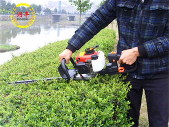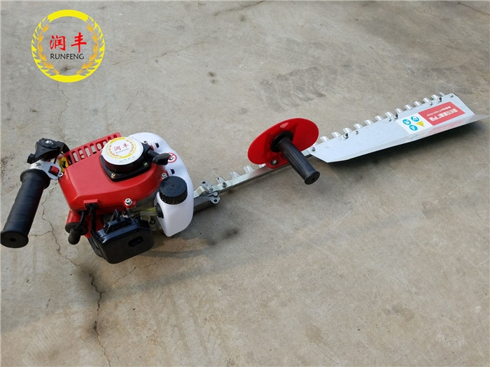 既可用于园林绿化养护、园艺造景的修剪绿篱,草坪修剪;还可修剪球形树篱、清除杂草和灌木丛、收割牧草。在草坪的平整度、倾斜度、草坪的宽窄度达不到要求,推车式草坪机无法正常作业的情况下,消除作业“死角”。 单人每天可修剪6亩,相当于6人用剪刀修剪1天的工作量;操作手只需略为调整刀盘的角度,既可保正修剪后绿篱蓬面的任意倾斜角度造型;