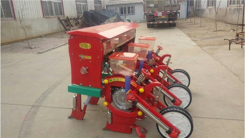 谷物蔬菜药材精播机工作原理是:在通过本机排种控制系统对下种数量的精密控制,播种时按量定距,将种子相对有规律的单粒排放在出苗环境较好的土层。使出苗株距自然合理,减省了人工蹲下间苗的劳苦环节 播种效率是人工播种的15倍以上。每亩节约间苗投工4—5天。大面积种植每亩节省人工间苗费400—500元。并因单株出苗粗壮每亩增产10—20﹪。 集“省工、省种、省时、省力、省墒、保墒、节肥、省水、苗匀、苗齐、苗全、苗壮、质优、增产”于一体。谷物、蔬菜、苜蓿牧草、中药材、草坪等小粒种子“出苗质量好”的播种机。 种植谷子四大要领;细整地, 散施肥 ,深开沟 浅覆土。