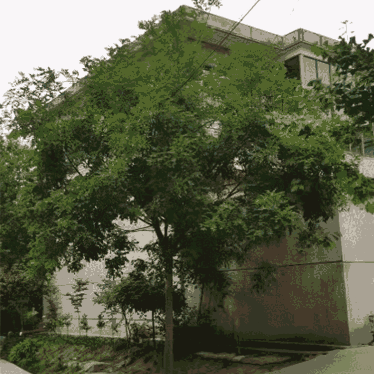 槐(原始种),乔木,高达25米;树皮灰褐色,具纵裂纹。当年生枝绿色,无毛。羽状复叶长达25厘米;叶轴初被疏柔毛,旋即脱净;叶柄基部膨大,包裹着芽;托叶形状多变,有时呈卵形,叶状,有时线形或钻状,早落;小叶4-7对,对生或近互生,纸质,卵状披针形或卵状长圆形,长2.5-6厘米,宽1.5-3厘米,先端渐尖,具小尖头,基部宽楔形或近圆形,稍偏斜,下面灰白色,初被疏短柔毛,旋变无毛;小托叶2枚,钻状。