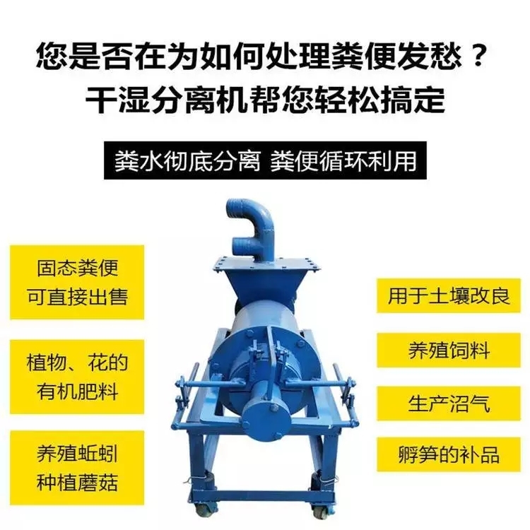 粪便脱水机是用泥浆泵将原粪水送至主机内,通过安置在筛网中的螺旋轴,主电动机带动减速机,从而使螺旋轴旋转,挤压分离出固态物质,液体则通过筛网从机体下部的出液口流出。随着原粪水的不断进入主机,从而实现批量生产;经脱水分离的干粪便近乎无臭味,粘性小可作为肥料使用;经脱水分离的干粪便拌入草糠充分搅;加入菌种:发酵,造粒可制成复合有机肥;同时可制成颗粒饲料,为鱼儿好肥料;供花卉/特种经济作物施肥,能改造土壤的有机质;出售有机肥料可获得额外的经济效益。