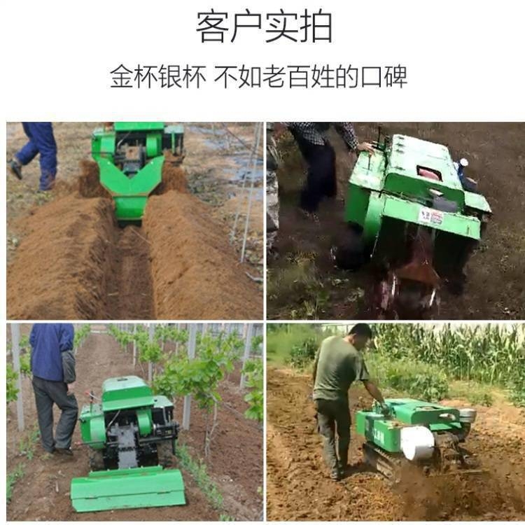 多功能 履带式开沟施肥机安装上不同的配件可以进行单独旋耕、回填、单独开沟、施肥、也可混合搭配使用。产品结实,性能优越,操作方便.:机身加厚,密,履带式行走,可进行原地转向。刀具都是加厚75号猛钢锻造,非常耐磨,工作效率高.