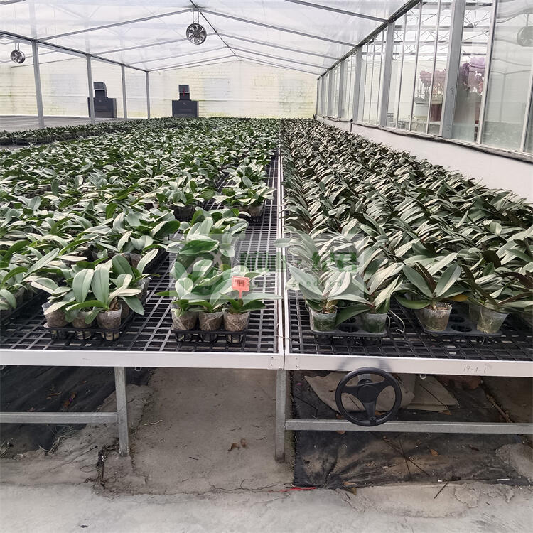温室苗床分为固定式苗床和移动式苗床,固定式苗床为单层苗床,高度不可调整,采用热镀锌角钢或矩形管作为骨架,床面铺设钢丝网。移动式苗床采用热镀锌管材,边框采用铝合金,苗床网表面热镀锌防腐处理,高度可微调,具有防侧翻装置,且可在任意两苗床之间产生适当宽度作业通道。