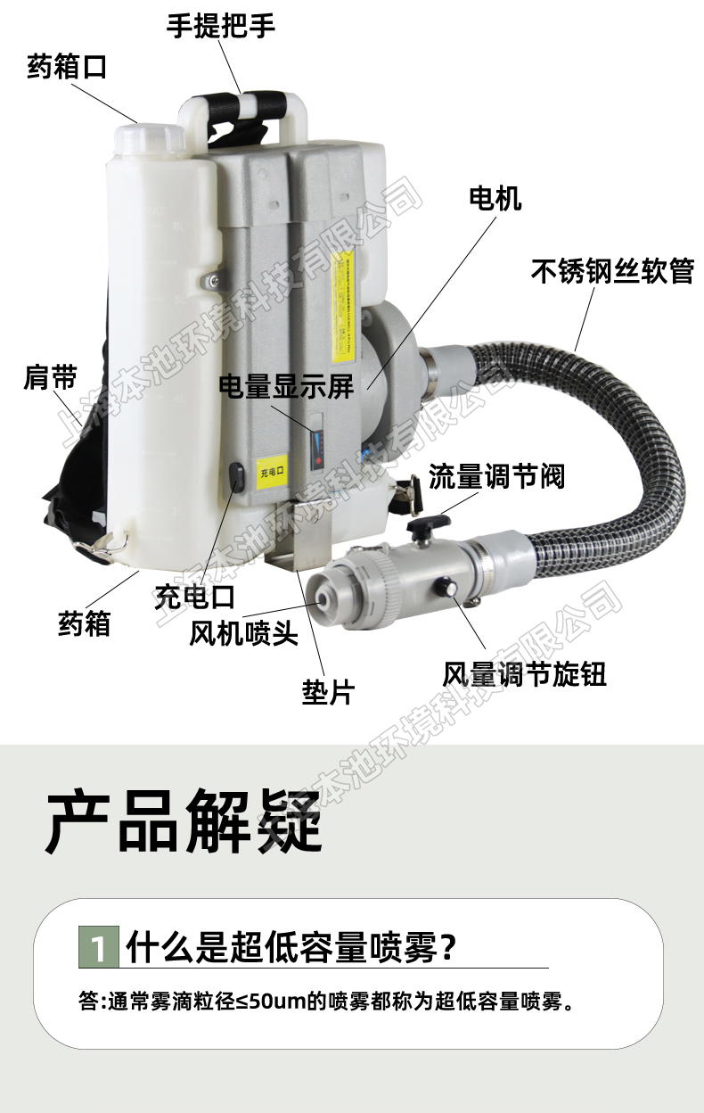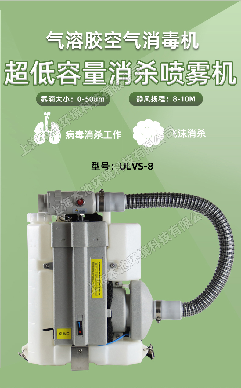 ULVS-8超低容量消毒喷雾器背负式电动消杀喷雾机,8L大容量48V打药机,锂电池,续航时间久,雾化细腻,适用于多种场景的消杀工作。